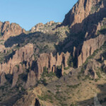 We actually had a special show when the bats flew. The bats fly in a circle as they gather in the cave entrance and head off in groups. These groups head off to the river to drink before separating to feed for the night. Group after group exits the cave. About 20 minutes into their flight a Red Tailed Hawk came to feed and we watched him for over an hour as he picked off a bat from the swarm and went over to the rocks or shrubs to feed on it. Sometimes he would miss and go rest a bit before trying again. At the time I thought it made sense-it seems like easy pickings. But bats must not taste very good. I asked the Rangers how often he shows up and one said it was the first time she had seen it. The other ranger who had worked there quite a while said it was only the second time he had seen it. (That made me all the more irritated that I wasn’t allowed to video it, but also excited that we had seen such a unique sight.) I am guessing the Hawk had a bad day hunting, so this was his backup plan.